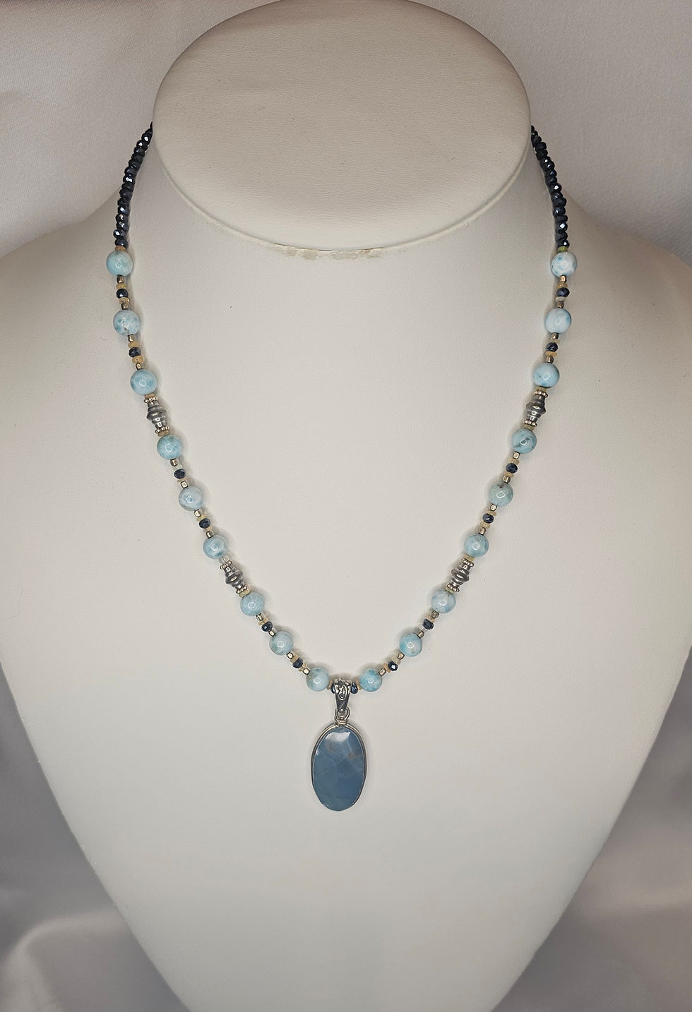 Blue Obsidian and Larimar Pendant Necklace