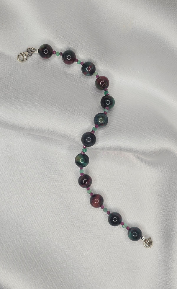 Discover the exquisite charm of Kc Jewelry Creations with our Majestic Tiger Eye Bracelet. This 7.5 inch bracelet features 10mm majestic tiger eye beads, complemented by vibrant garnet and green apatite beads. Strung with precision using wire and finished with a durable sterling silver lobster clasp, this piece exemplifies our dedication to crafted elegance in beads and silver. Elevate your style with a unique, artisan-made treasure that's uniquely yours.
