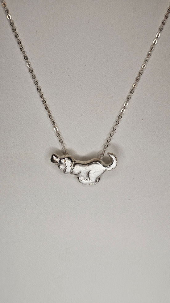 This Sterling Silver Dog Pendant, handcrafted from sterling silver metal clay and kiln fired to a width of 1.25 inches, is a charming addition to any jewelry collection. The piece enjoys a modern, elegant touch that's perfect for pet lovers and those who appreciate unique artisan creations. It hangs gracefully on a 20-inch sterling silver chain, secured with a reliable sterling lobster clasp. At Kc Jewelry Creations, we pride ourselves on merging exquisite craftsmanship with individual expression, creating pieces that are truly "Uniquely Yours." Treat yourself or a loved one to this beautiful symbol of loyalty and affection.