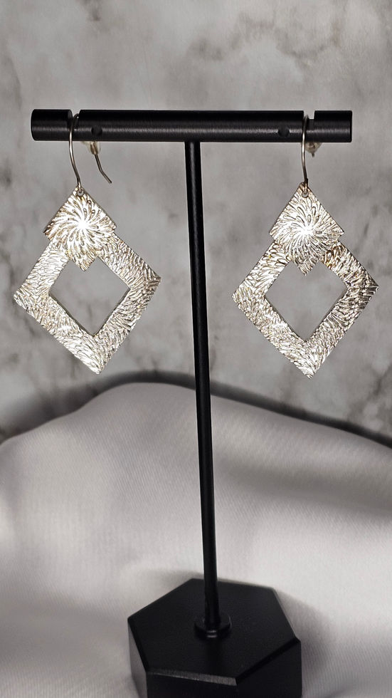 These sterling silver earrings, crafted from fine silver metal clay, exude an air of refined elegance, perfect for those who appreciate artisan-made jewelry. Measuring 1.25 inches long, they dangle gracefully from sterling silver French wires, creating a timeless and sophisticated look. At Kc Jewelry Creations, we pride ourselves on offering uniquely yours pieces that blend artistic craftsmanship with superior quality. These earrings showcase our commitment to creating exquisite, handcrafted jewelry that makes every wearer feel uniquely special. They promise to be a cherished addition to your collection.